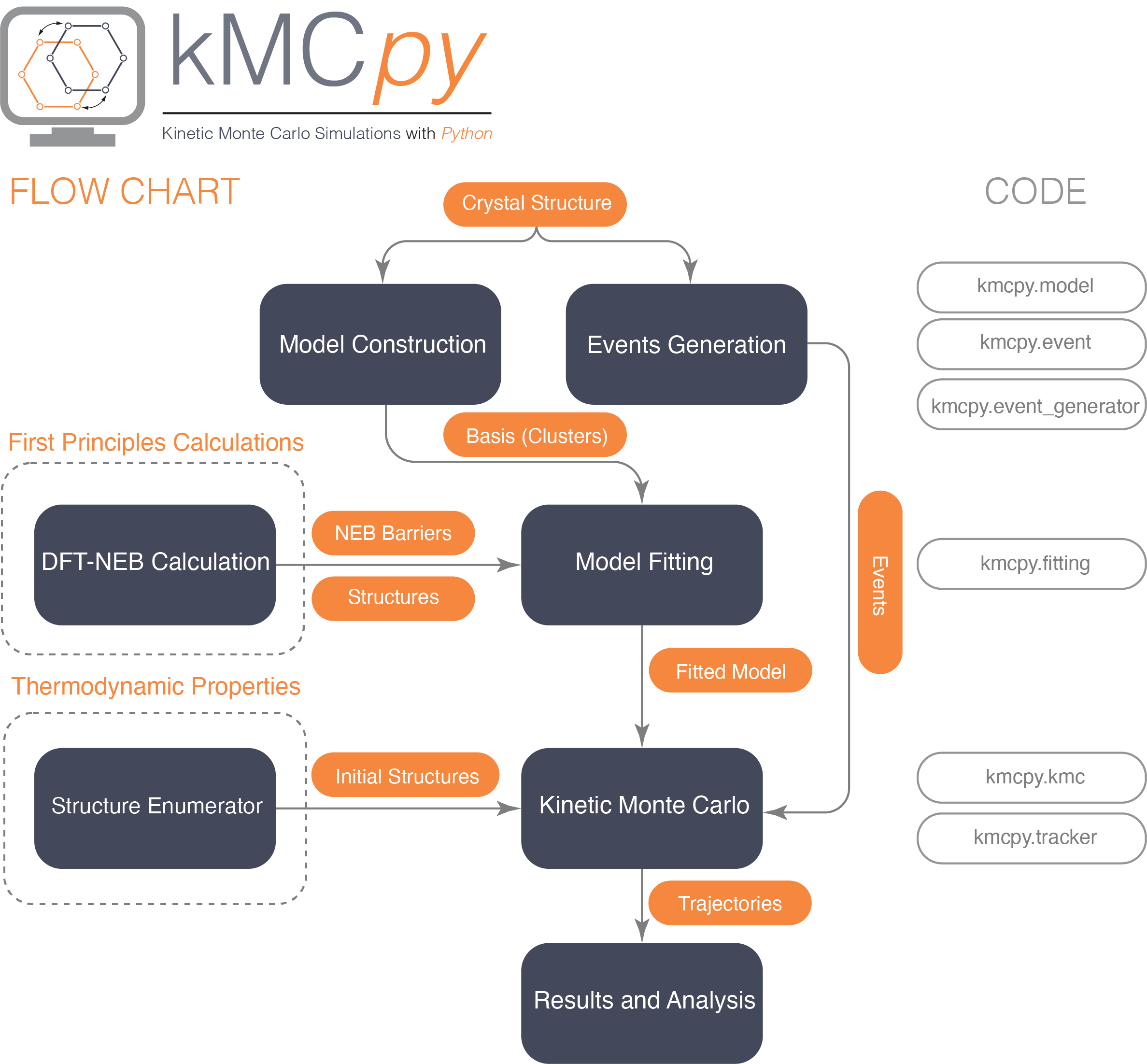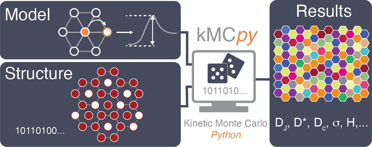 We are fervently committed to pushing the boundaries of computational methods and applying them to address forefront challenges in materials science. Among our notable contributions is kMCpy, a Python-based kinetic Monte Carlo simulation code. These developed codes, embodying our dedication, are accessible here.